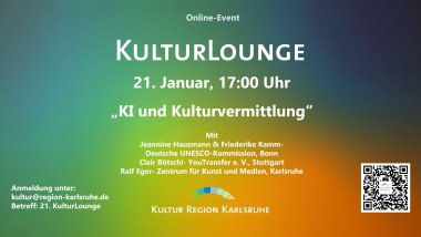 Das vom Kultur-Digital-Programm der Kulturstiftung des Bundes geförderte Projekt »intelligent.museum« setzt hier an und befähigt Besucher*innen, KI-Anwendungen kritisch zu reflektieren. Ziel ist es, Barrieren abzubauen und Vermittlungsformate in Museen inklusiver und zugänglicher zu gestalten. In der nächsten KulturLounge diskutieren wir mit Jeannine Hausmann, Friderike Kamm (Deutsche UNESCO-Kommission), Clair Bötschi (YouTransfer e.V.) und Ralf Eger (Zentrum für Kunst und Medien) über Potenziale und Herausforderungen von KI-Technologien in der Kunst- und Kulturvermittlung.